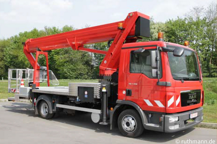 Der neue RUTHMANN STEIGER® T 330 markiert die Spitze der LKW-Arbeitsbühnen-Branche, wenn es um maximale Leistungsdaten und optimales Handling im Segment 7,49t-Chassis geht. Die sensationelle Arbeitshöhe von 33 m gepaart mit einer seitlichen Reichweite von 21,20 m erklärt den Nutzen, von dem Arbeitsbühnenvermieter, Garten- und Landschaftsbauer, Gebäudereiniger und Handwerker profitieren können.
